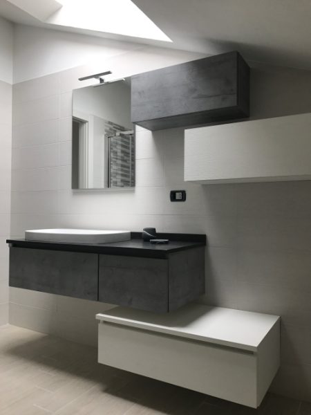 Arredo bagno laccato realizzato in Brianza, su progetto e misure personalizzate.